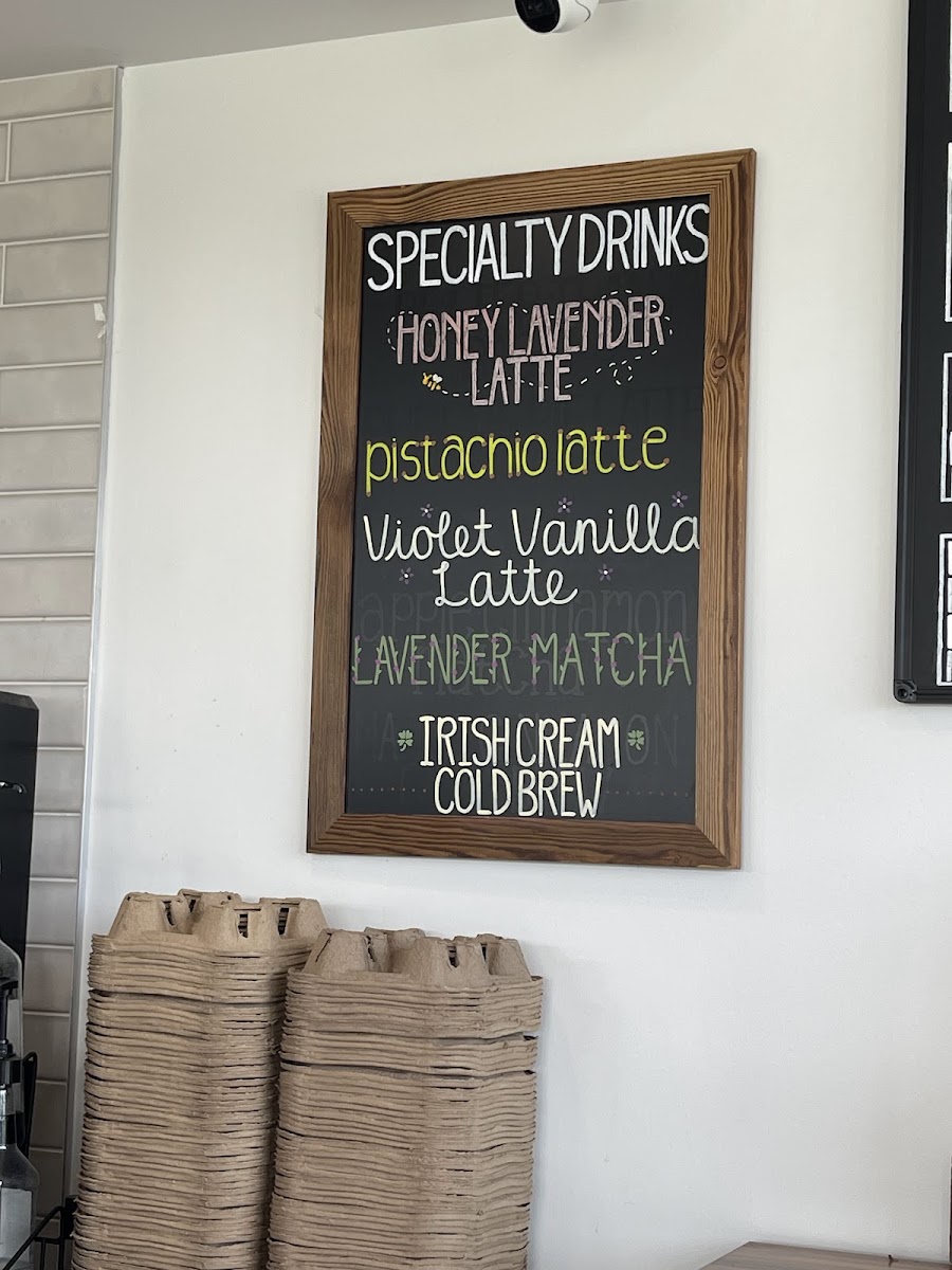 Our honey and lavender latte pairs the sweetness of honey with the delicate floral notes of lavender, creating a smooth, aromatic drink with a comforting balance of flavors.